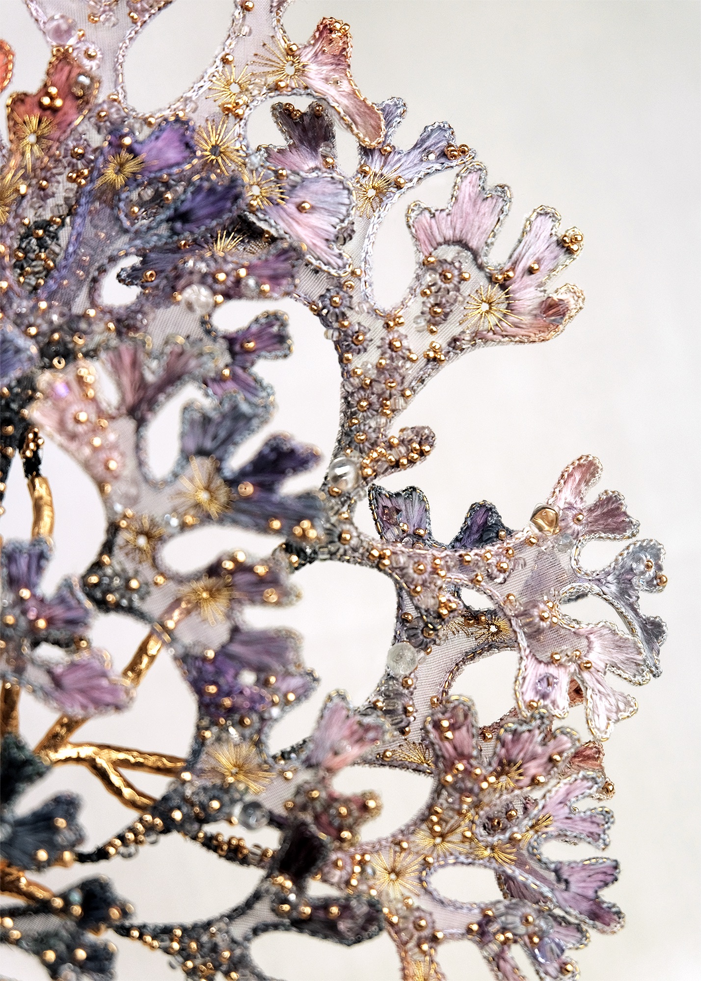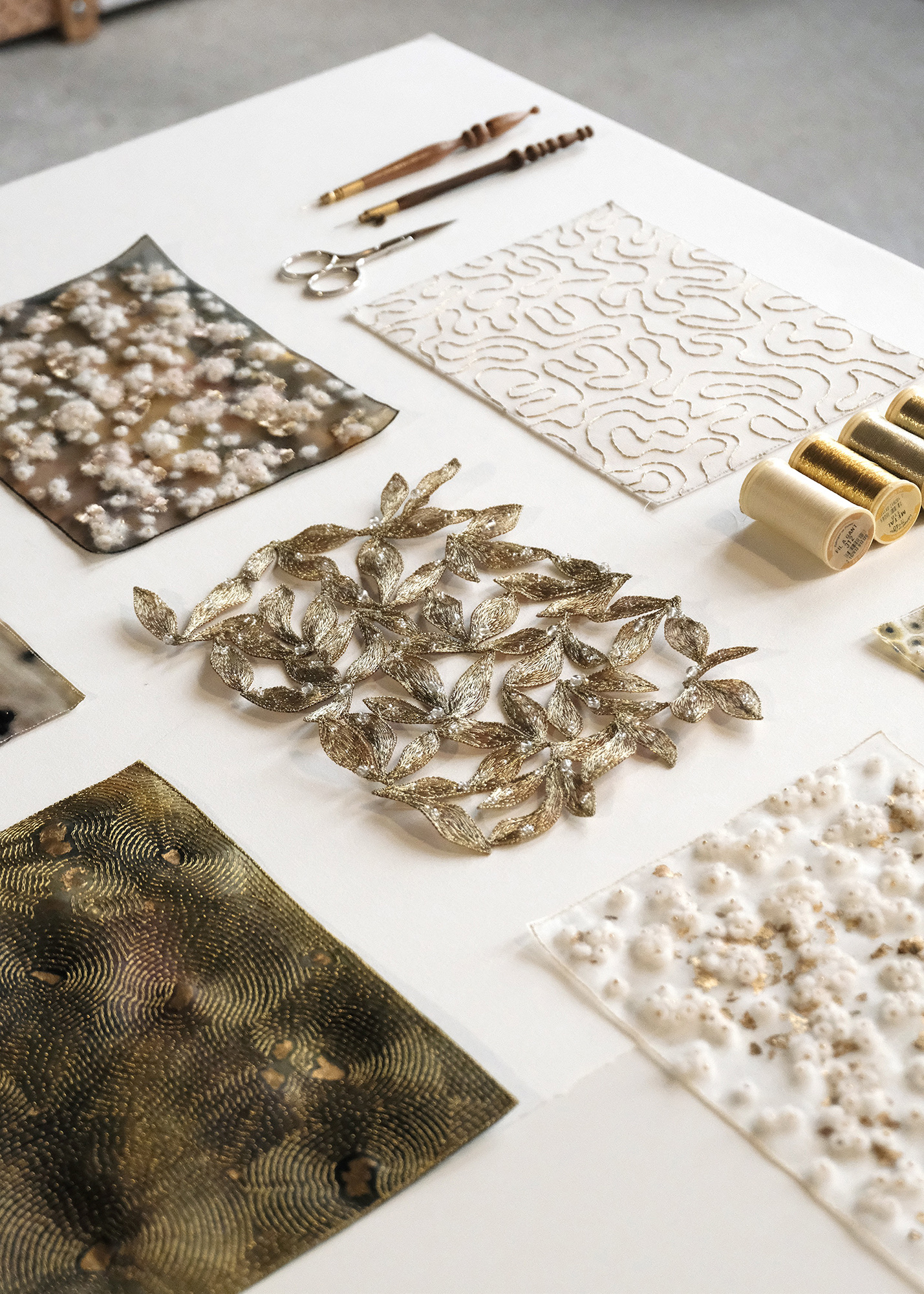 Cette dernière année m’a permis de réaliser un stage long dans un atelier de broderie qui m’a embauchée une fois mon diplôme obtenu. J’ai ainsi travaillé pendant sept ans comme styliste broderie chez Cécile Henri Atelier à Paris, un atelier travaillant pour la haute couture et le prêt-à-porter de luxe (Chanel, Dior, Saint Laurent, Céline…).