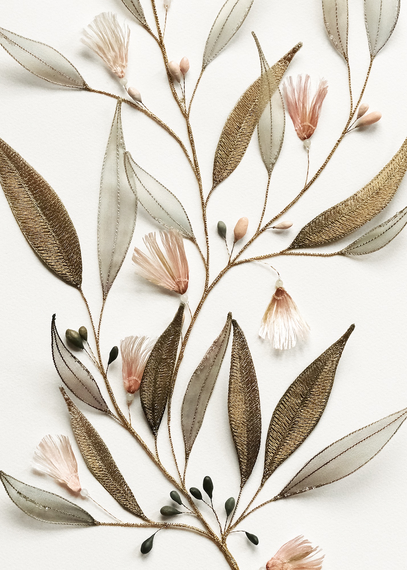 Après cette expérience passionnante et enrichissante, j’ai choisi de me lancer à mon compte comme artiste brodeuse. Je crée des œuvres brodées uniques, des pièces murales et des objets d’art, ainsi que des commandes sur mesure, à la croisée de l’art, de l’artisanat et du design.