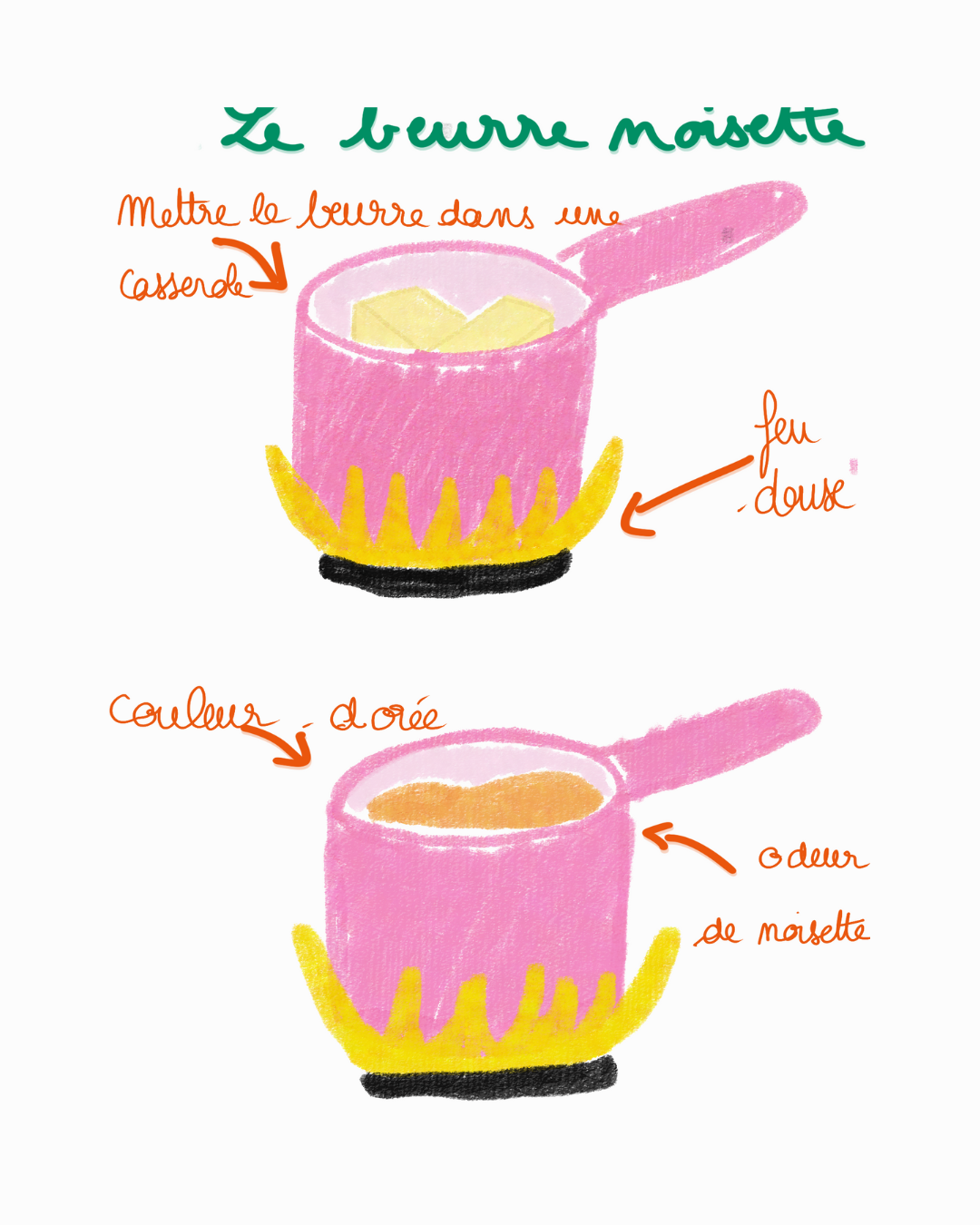 Tu mets le beurre dans une casserole à feu doux.